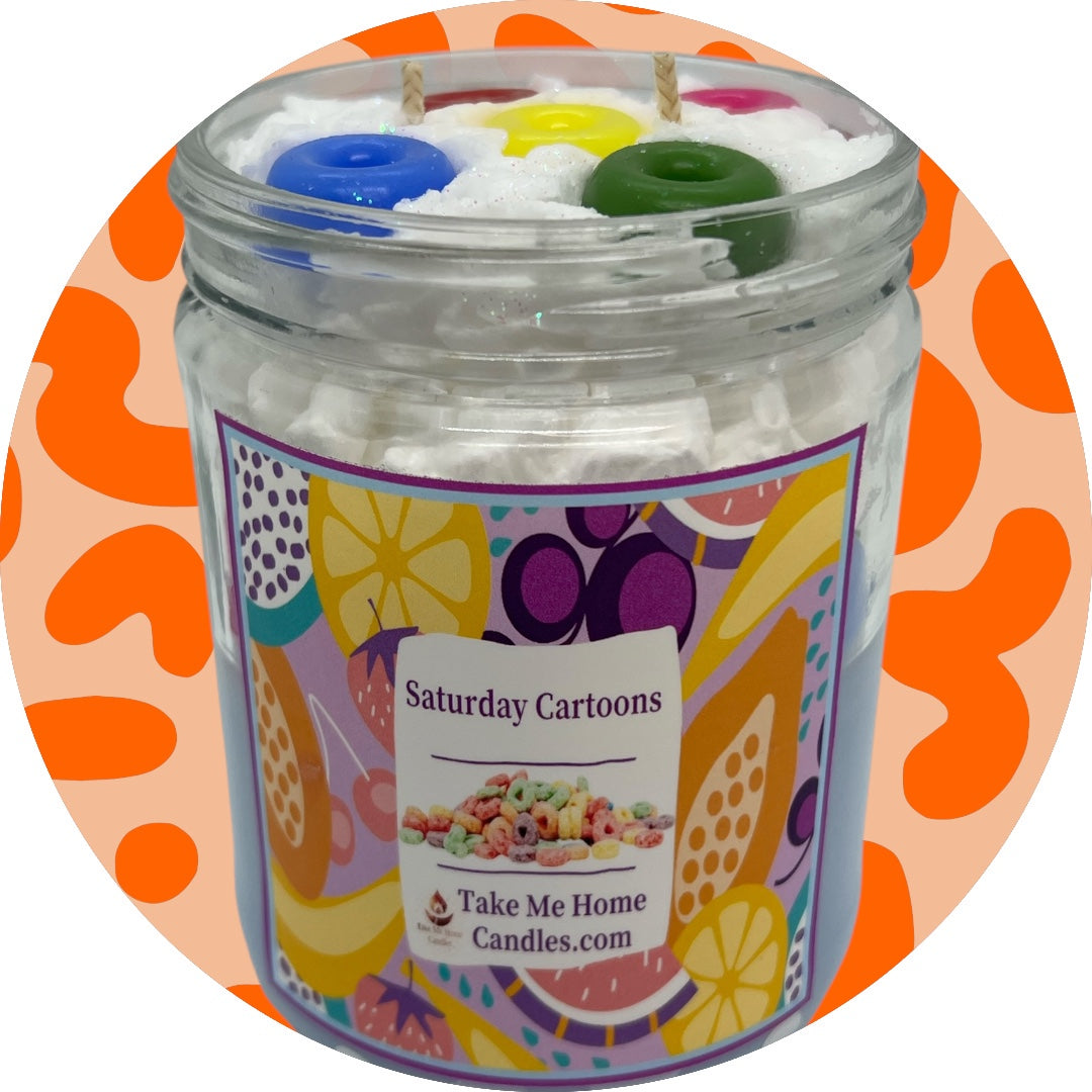 Transport yourself back to lazy Saturday mornings with our Saturday Cartoons Whipped Cream Candle, a nostalgic fragrance that captures the beloved aroma of Froot Loops cereal. Bright citrus notes of lemon, lime, and grapefruit greet you first, followed by a delicate blend of lavender and orange that adds warmth and depth. As the scent settles, creamy vanilla and sandalwood create a comforting base that lingers beautifully throughout your space. Perfect for anyone seeking a playful, multi-dimensional fragrance that evokes childhood memories and pure joy. Light this candle and let the magic of Saturday mornings fill your home.